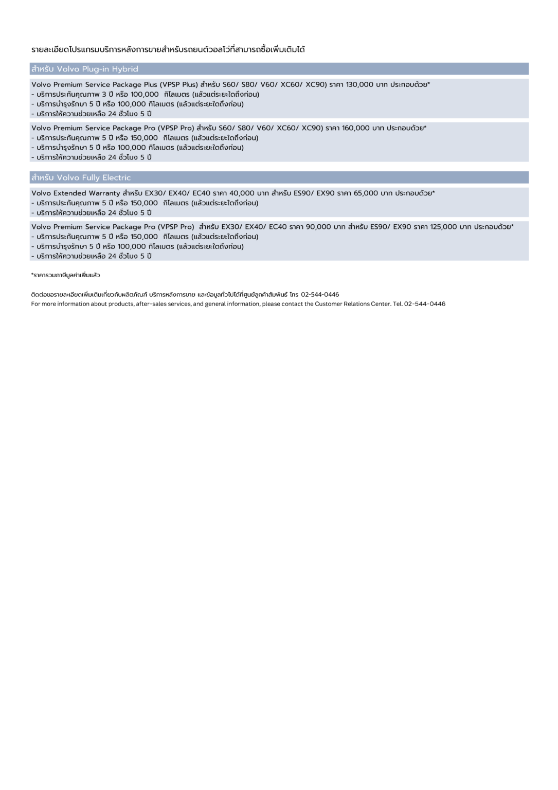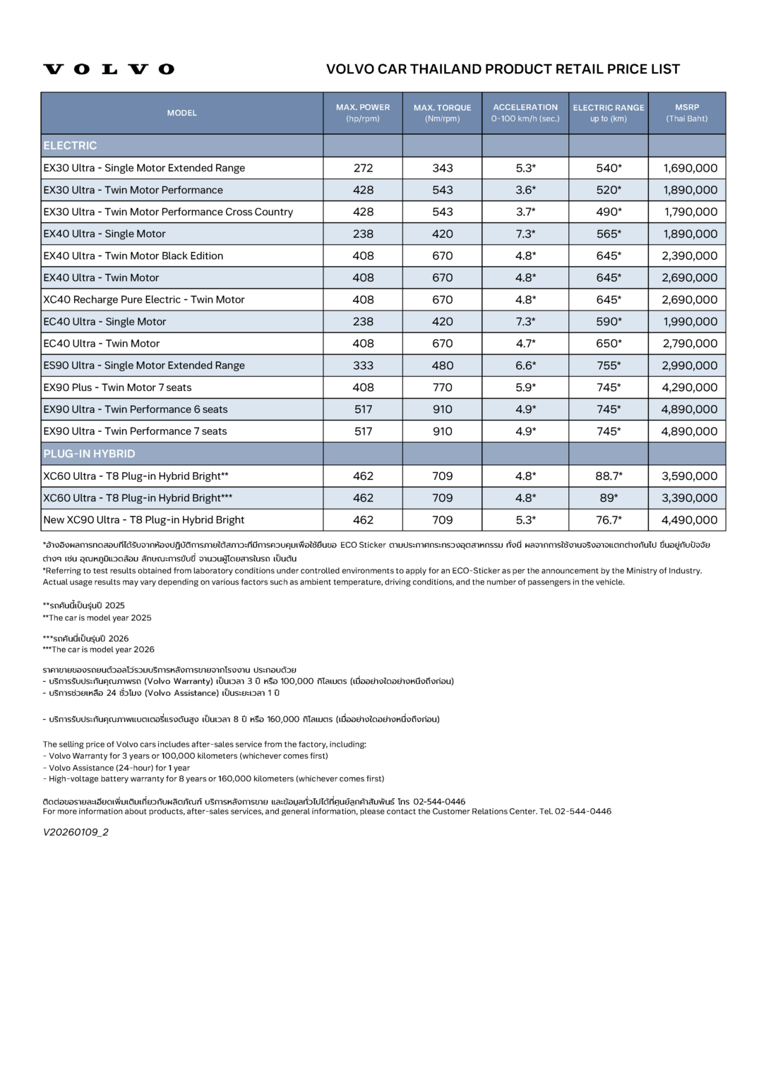 ตารางราคารถวอลโว่ Recharge